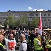 Hier folgen ein paar Eindrücke des Warnstreiks in Darmstadt. Gemeinsam kamen 5000 Menschen zusammen und für Ihre Forderungen zu kämpfen.