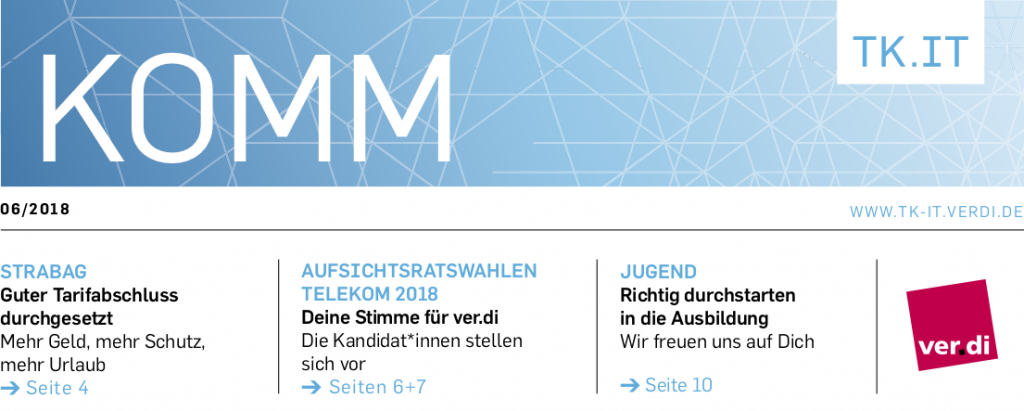 Die aktuelle KOMM könnt Ihr hier lesen oder auf Papier in Eurer ver.di Public.